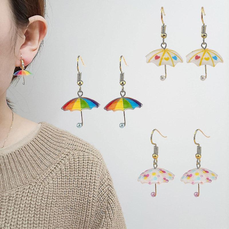 Our Umbrella Drop Earrings are crafted from lightweight acrylic and adorned with vivid colors for a playful, eye-catching look. Perfect for any occasion, these earrings provide a fashionable statement with a light, comfortable feel.